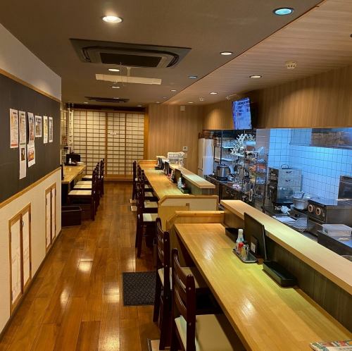 テーブル席は少人数のグループでもゆったり座れ、食事メインの利用にも適しています。唐揚げや角煮などシェアしやすい料理も多く、友人同士の食事会にも相性抜群。カジュアルながら落ち着きのある空間で、会話を楽しみたいシーンにも安心して使える席構成です。
